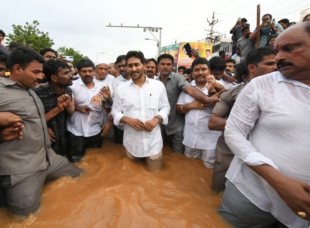 YSRCP Chief and Former Chief Minister YS Jagan Mohan Reddy visited flood-affected areas in Vijayawada, where he walked through waist-deep water in the Singh nagar and Yanamalakuduru regions and interacted with residents facing severe difficulties due to heavy rains and floods.